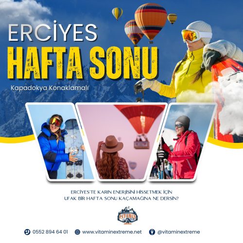 'da yayınlandı nil polat12 Nisan 2024Trustindex, incelemenin orijinal kaynağının Google olduğunu doğrular. Vitamin extreme tatil için ardığınız adres kesinlikle anlatamam görmeniz lazım bütün ekip harika başta Çağlar hocam Veysel hocam Süleyman hocam İbrahim hocama sabırlarından dolayı çok teşekkür ederim ilgi alaka Sude hanım Kardelen hanım tüm ekip çok ilgili Kapadokya gezimiz ayrı güzeldi Ömer hocama teşekkür ederim Kesinlikle tekrar gideceğimiz tek adres oldu İyiki varsınız'da yayınlandı Kemalettin polater30 Mart 2024Trustindex, incelemenin orijinal kaynağının Google olduğunu doğrular. Çok memnun kaldık veysel hoca ve Çaglar hocama çok teşekkür ederim. 45 yaşında ilk defa kayak takımlarını kullanmayı ögrettiler.yine geleceğim inşallah'da yayınlandı CENK AL (Enjoyable Choices)17 Mart 2024Trustindex, incelemenin orijinal kaynağının Google olduğunu doğrular. Çağlar hoca İbrahim hoca ve Mustafa hocaya teşekkürler ☺️'da yayınlandı Filiz Öz16 Mart 2024Trustindex, incelemenin orijinal kaynağının Google olduğunu doğrular. Çağlar hocam harika bir Eğitmensiniz ekibiniz muhteşem ibrahim hocam Mustafa hocam Buse hepiniz harikasınız mutlaka yine gelicem'da yayınlandı Seray Özçelik11 Mart 2024Trustindex, incelemenin orijinal kaynağının Google olduğunu doğrular. Çok güzel bir deneyimdi, her şeyden çok memnun kaldık.'da yayınlandı begum10 Mart 2024Trustindex, incelemenin orijinal kaynağının Google olduğunu doğrular. İlk defa kış tatili yaptım ve ilgileri sayesinde son olmayacak çok memnun kaldım kesinlikle tavsiye ederim'da yayınlandı Murat Aydın10 Mart 2024Trustindex, incelemenin orijinal kaynağının Google olduğunu doğrular. Tur olarak katıldığım ilk etkinlik oldu , iyi ki vitamin extreme ile gelmişim , eğitmenlerde çalışanlarda hepsi güler yüzlü kibar ve her konuda ilgililer gerçekten , artık hem yazın hemde kışın ekip belli diyicem herkese 👍'da yayınlandı Mert Sual10 Mart 2024Trustindex, incelemenin orijinal kaynağının Google olduğunu doğrular. Deneyimleyebileceğiniz en iyi spor ve aktivite kesinlikle herkese tavsiye ediyorum 💯'da yayınlandı Emel güres4 Mart 2024Trustindex, incelemenin orijinal kaynağının Google olduğunu doğrular. Haftasonu erciyes hill otel konaklamali paketi aldik. Transfer konusunda hic sorun yaşamadık. Otel 2 yildiz, yemekler fena değil, hijyen zayıftı. dağ oteli paketi almıştık ama kapadokya paketi almak lazım. Hem bütün ekip orda, hem daha uygun fiyat hem de gördüğümüz kadarıyla daha kaliteli oteller. Eğitim kısmı ise dolu dolu ve tüm ekip çok ilgiliydi. Çağlar hoca kayak eğitimine, kendi ekibine ve organizasyona çok hakimdi. Tereddüt etmeden rezervasyon yapılır, tekrar tercih edilir bir organizasyon. Emeklerinize sağlık 👍